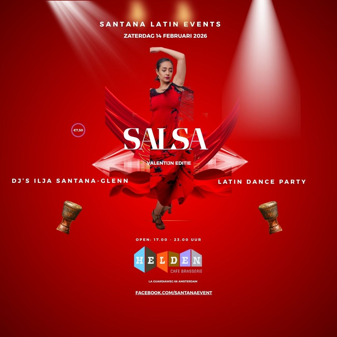 Santana Latin Events organiseert haar 1e latin event van 2026 in onze nieuwe locatie Helden Amsterdam Sloterdijk.We gaan starten met de Valentine party voor Latin Lovers op zaterdag 14 februari.